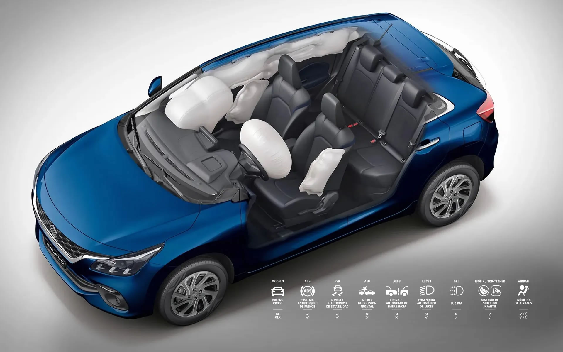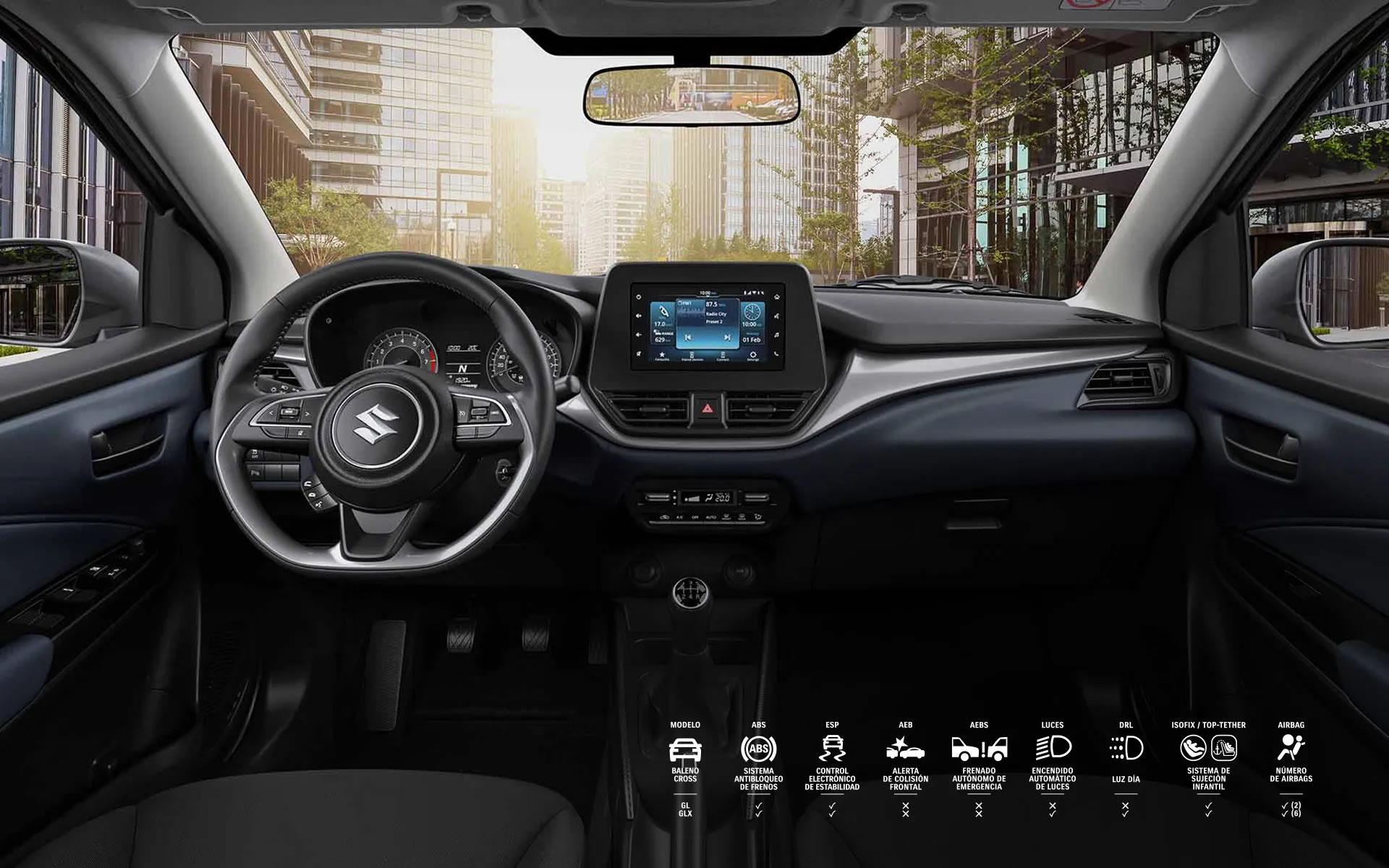 Solo con la primera mirada sabrás que el Suzuki Baleno Cross luce diferente a sus versiones pasadas. Su altura al piso mínima de 150 mm, guardabarros delanteros y traseros, barras de techo y molduras de protección lateral no solo dan una estética más robusta y crossover, sino que ofrecen beneficios y comodidad al momento de viajar.